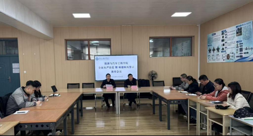 为深入推进全面从严治党向纵深发展,持续强化师德师风建设,筑牢教师思想防线与纪律底线,4月8日下午,能源与汽车工程学院在文萃楼104室召开全面从严治党暨师德师风警示教育会议。会议由院长于雪梅主持,副书记刘铁铸及分院全体教师参会。