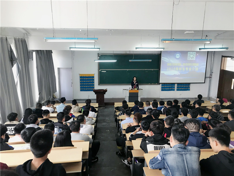 2018年9月7日14:00,电气工程学院电子信息工程技术专业在图书馆阶梯教室召开了2018级新生见面会,本次会议由电子信息工程技术专业团队教研室主任陈健巍主持,教研室张宇、高卉老师一同参会。