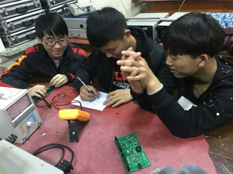2017年11月20日星期一晚6点至7点30分,<电子产品检测与维护>社团,在电子实训室322,开展本学期第12次社团活动。本次活动由社长-朱隆浩主持,副社长-史成文做具体指导,宣传委员-陈雨考勤并作活动记录。本次活动是第二次进行元器件的检测,依然是以小组为单位,使用万用表测试国赛训练板的电子元器件。在前一次的认知基础上,大一同学们操作起来更熟练一些,检测流程方法也更规范起来。活动中,同学们大胆尝试,认真操作,互相切磋,活动效果良好。