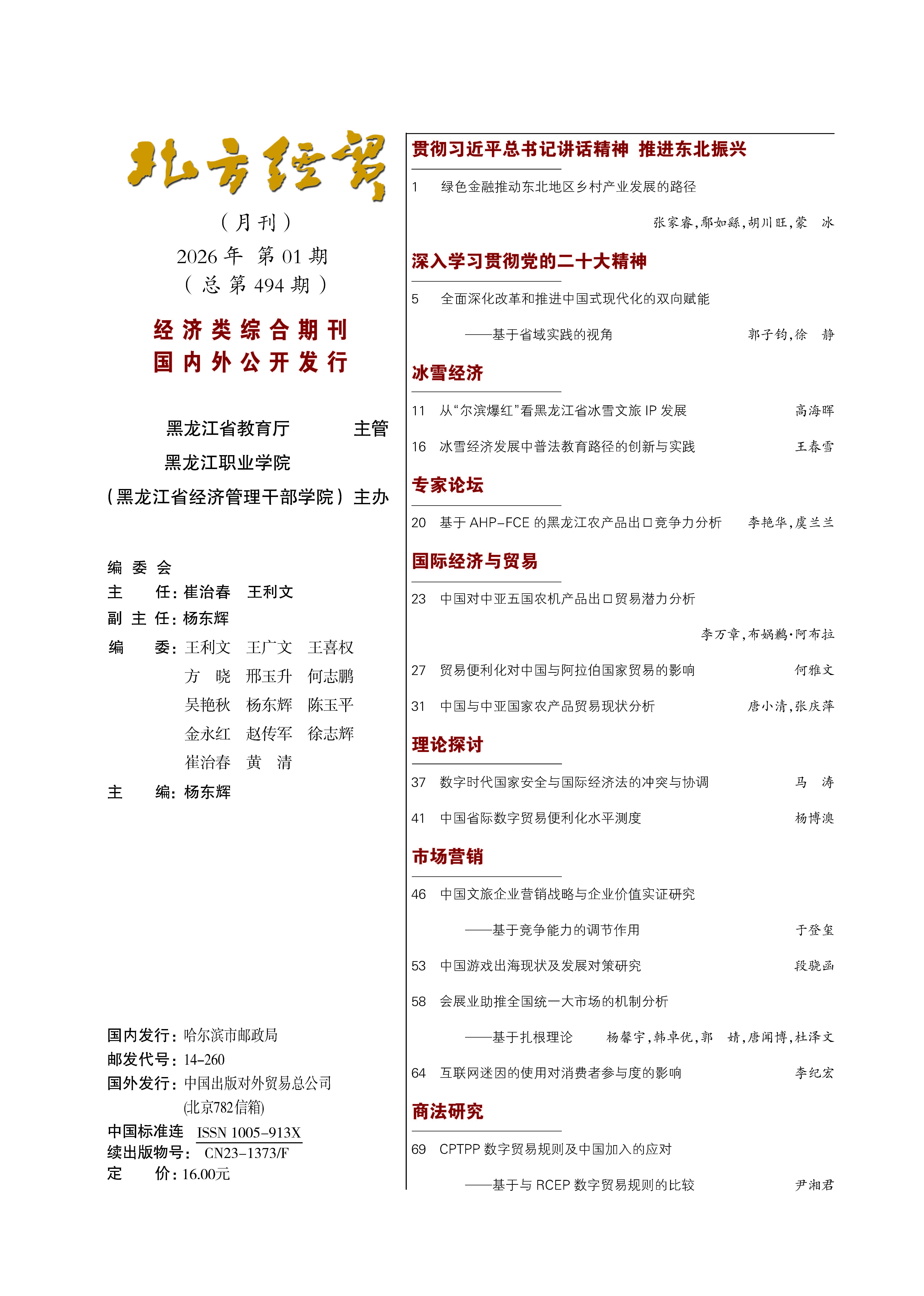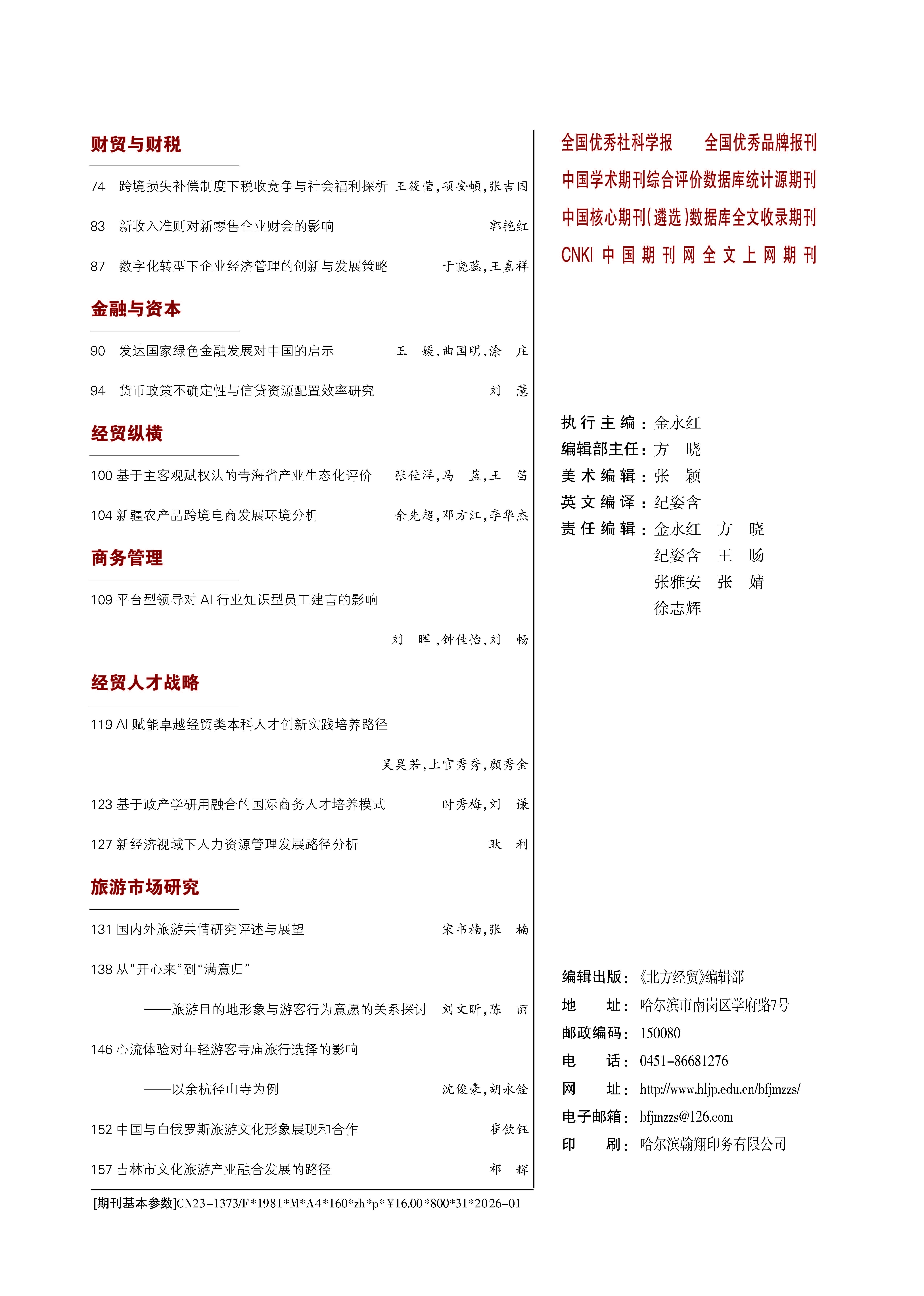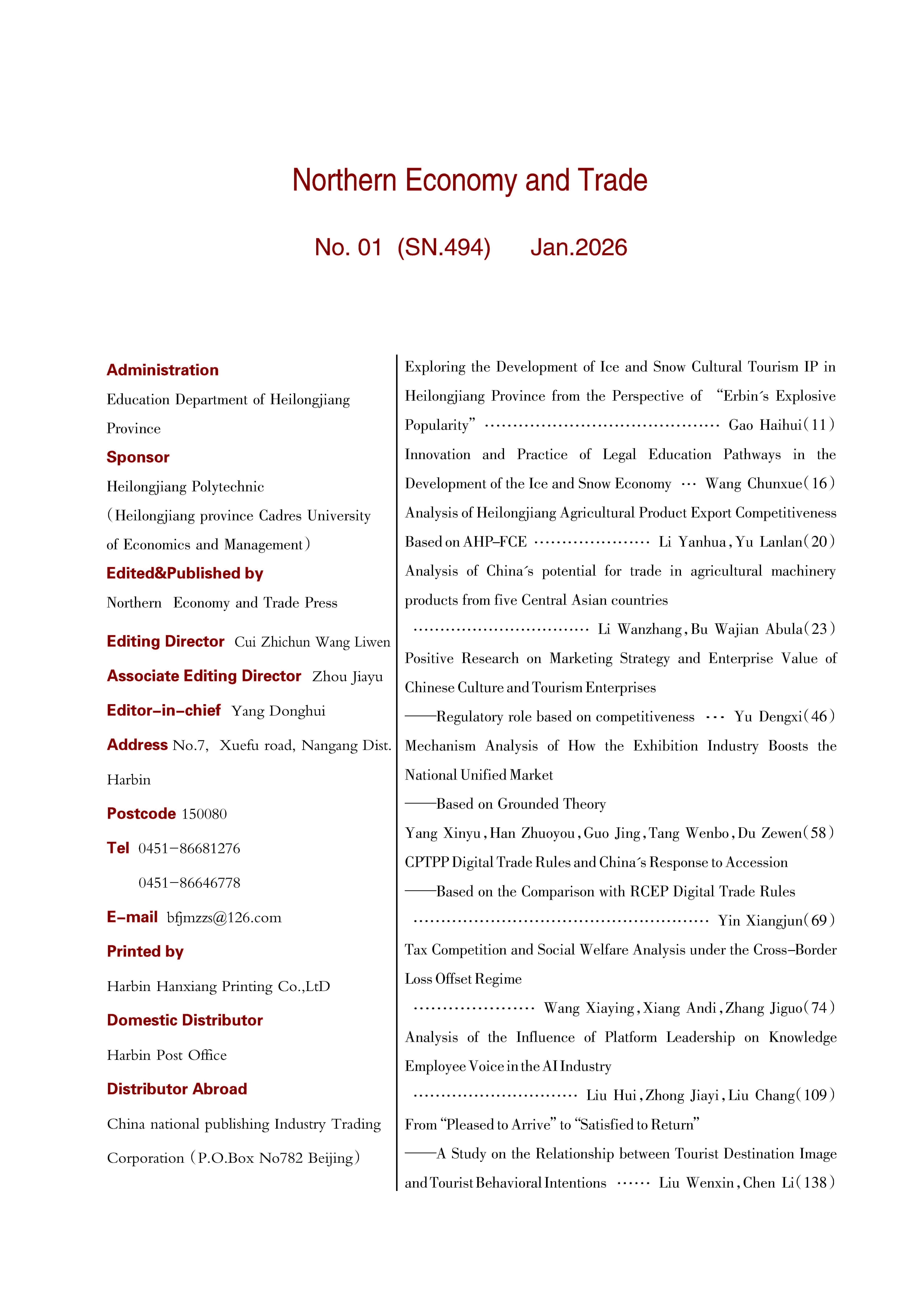 版权所有:北方经贸杂志社 地址:黑龙江省哈尔滨市南岗区学府路5号 邮编150080 电话:0451-86681276 86646778 邮箱:bfjmzzs@126.com