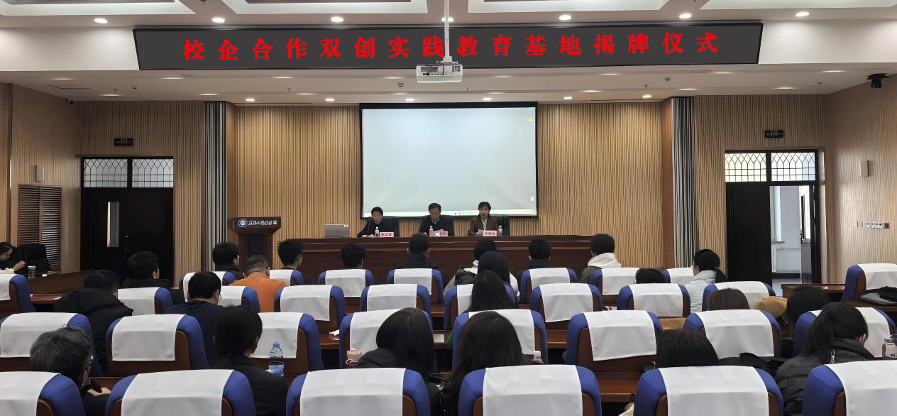 ▲学校举办校企合作双创实践教育基地揭牌仪式现场