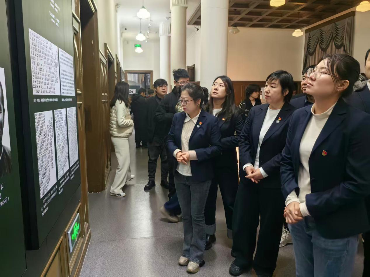 在纪念馆讲解员的引导下,党员教师们先后参观了《黑土英魂—— 东北抗日战争和解放战争时期烈士事迹陈列》《伪满洲国哈尔滨警察厅旧址及罪恶展》等核心展区。党员教师们驻足凝视史料图片,认真聆听“八女投江”等英雄群体的壮烈事迹,深切感悟“爱国守土、团结御侮、浴血奋战”的东北抗联精神。