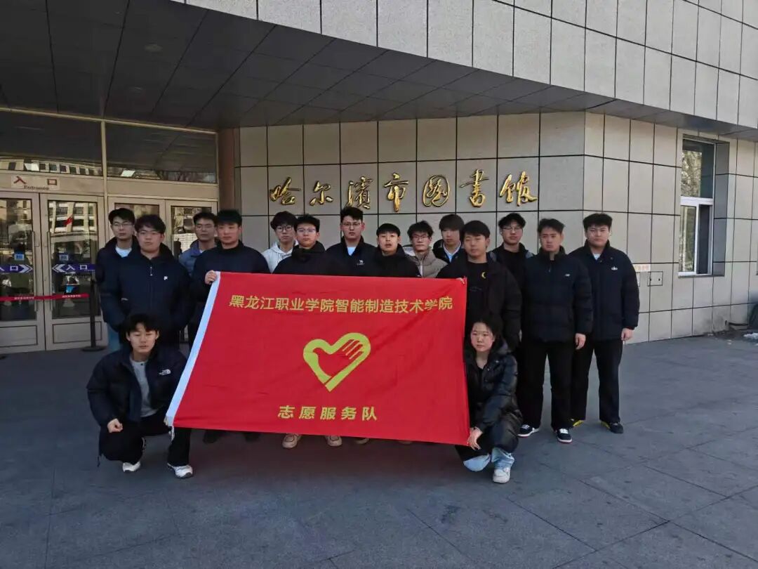 2026年3月7日,智能制造技术学院团总支组织开展了第102期哈尔滨市图书馆学雷锋志愿服务活动。本次活动由社团联合会副主席朱泓、志愿服务部部长孙泽旭、学习工作委员会主任黄含旭,带领16名大一学生志愿者,前往哈尔滨市图书馆,开展了历时三小时的志愿活动。