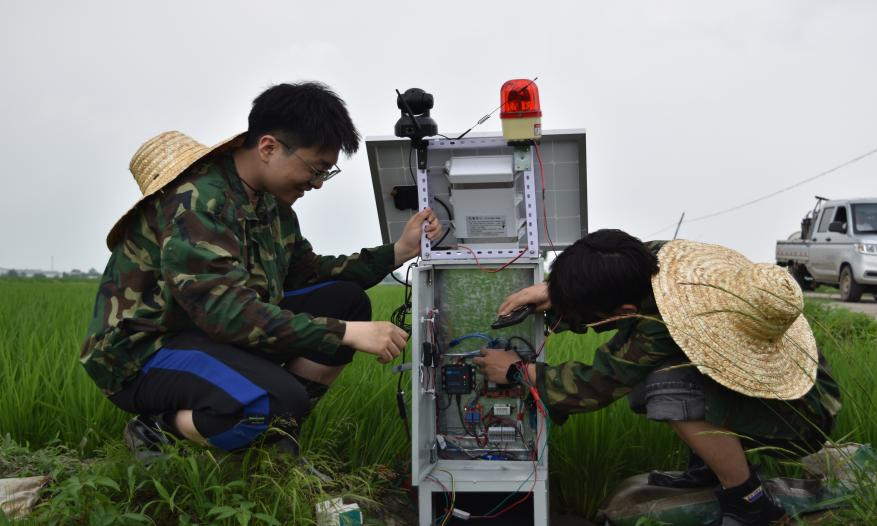 ▲ 智慧化水稻灌溉系统测试现场(左1为任思宇)