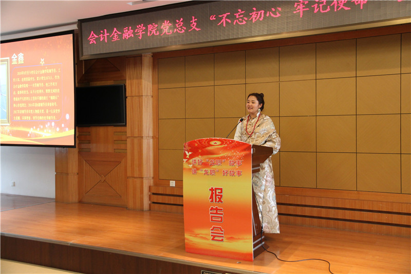 按照学校党委统一部署,为深入推进“不忘初心、牢记使命”主题教育活动,4月13日,会计金融学院党总支举办“讲好‘龙职’故事,讲‘龙职’好故事”报告会。校长于沐琳、副校长王明海、宣传统战部部长尚久悦出席活动,会计金融学院领导班子及部分教师、学生代表参加活动。