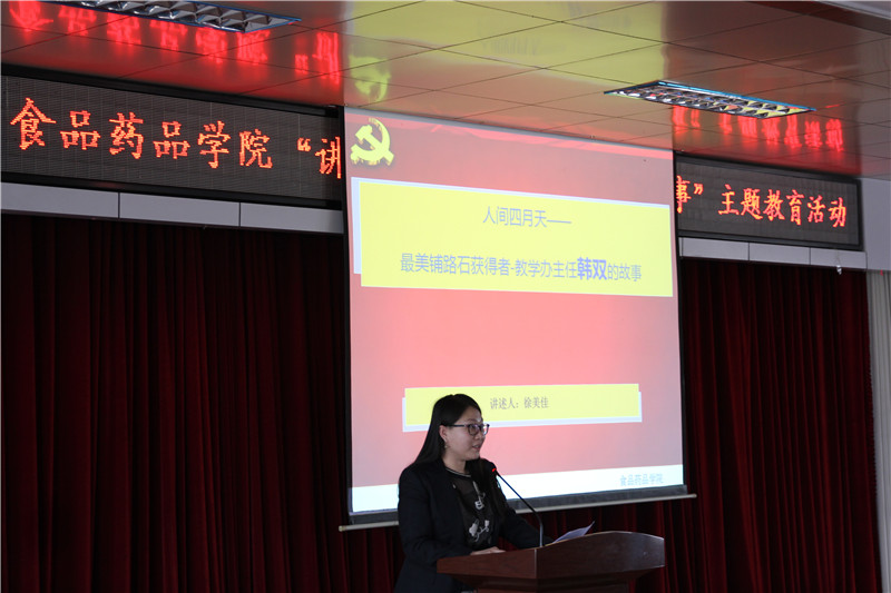 他们的故事也是食品药品学院的故事,通过开展“不忘初心,牢记使命”主题教育活动,对典型事迹的深入挖掘和提炼,通过宣讲人的生动讲述,参会人员受到一次精神洗礼,增进我院广大党员、教职工 “当好学生的铺路石”的思想,增强“修师德、当人梯、铺好路’的意识,学院将以此活动为契机,继续大力弘扬“自强有为,兴业报国”的“龙职”精神,为我校强校目标继续努力,砥砺前行!