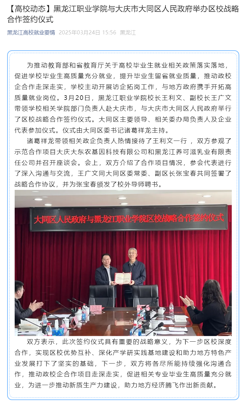 上一篇:【百度新闻】黑龙江职业学院与大庆市大同区人民政府建立战略合作伙伴关系