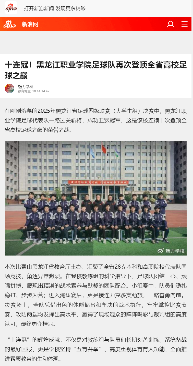 下一篇:【网易新闻】十连冠!黑龙江职业学院足球队再次登顶全省高校足球之巅