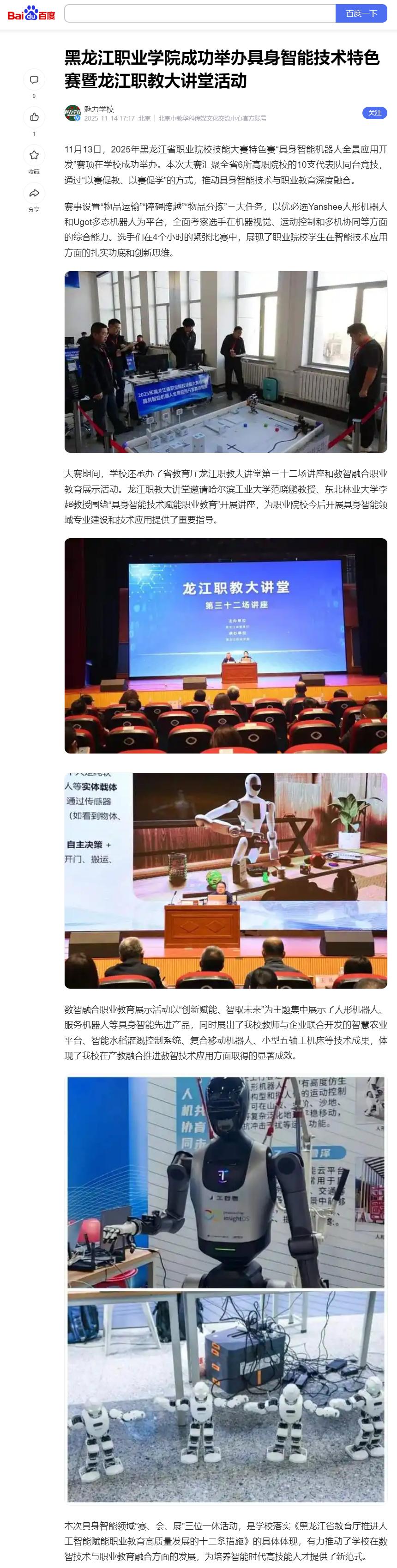 下一篇:【一点资讯】黑龙江职业学院成功举办具身智能技术特色赛暨龙江职教大讲堂活动
