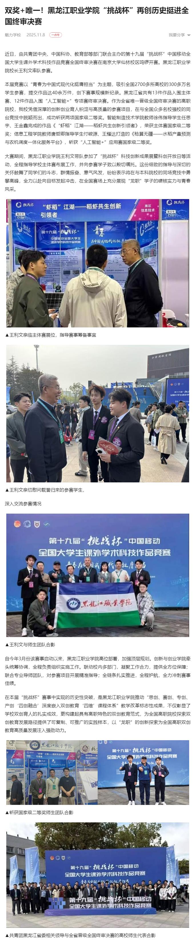 下一篇:【新浪新闻】黑龙江职业学院师生闪耀金砖大赛:以硬核技能彰显育人成效