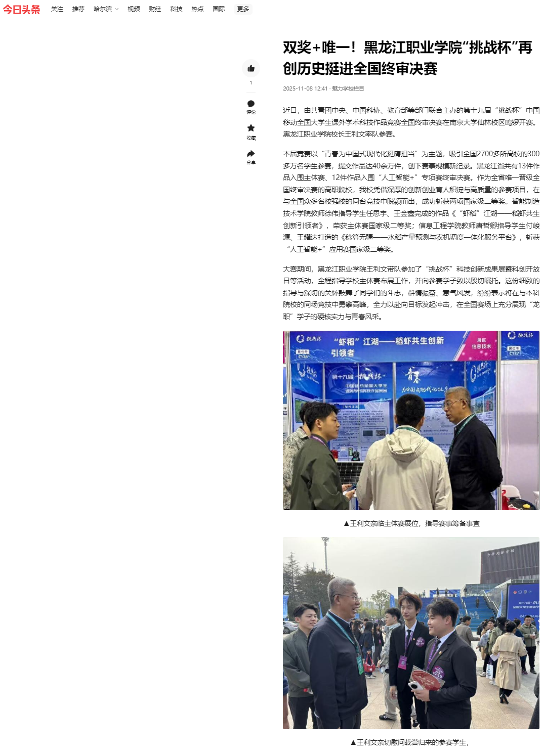 下一篇:【百度新闻】双奖+唯一!黑龙江职业学院“挑战杯”再创历史挺进全国终审决赛