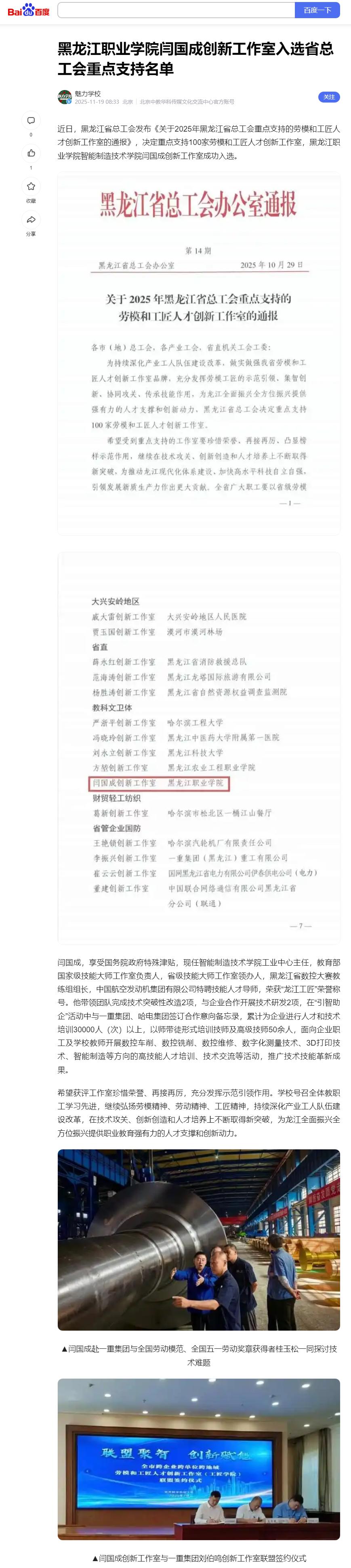 下一篇:【QQ浏览器】黑龙江职业学院闫国成创新工作室入选省总工会重点支持名单