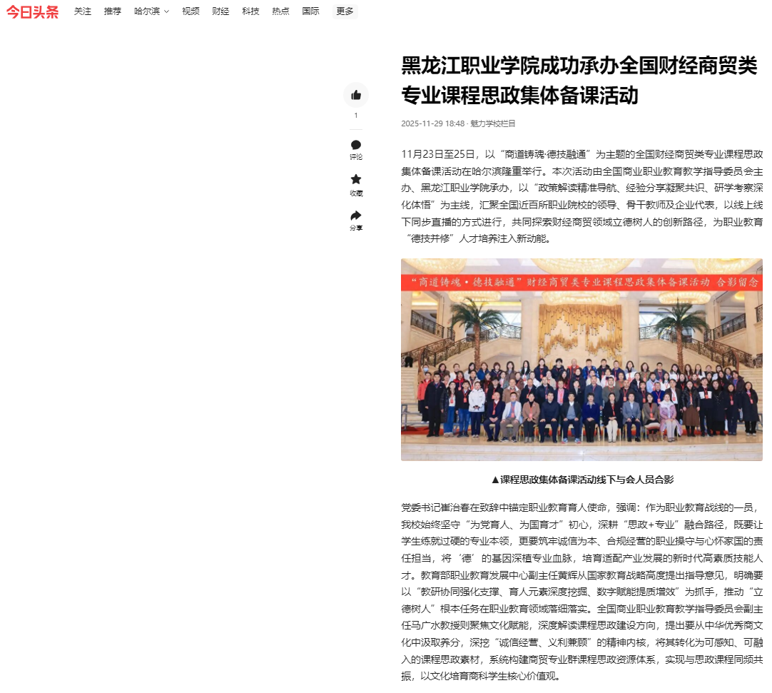 下一篇:【百度新闻】黑龙江职业学院成功承办全国财经商贸类专业课程思政集体备课活动