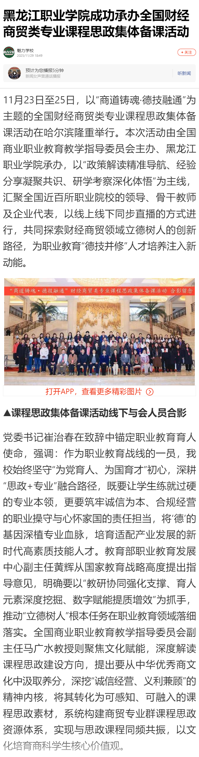 下一篇:【今日头条】黑龙江职业学院成功承办全国财经商贸类专业课程思政集体备课活动