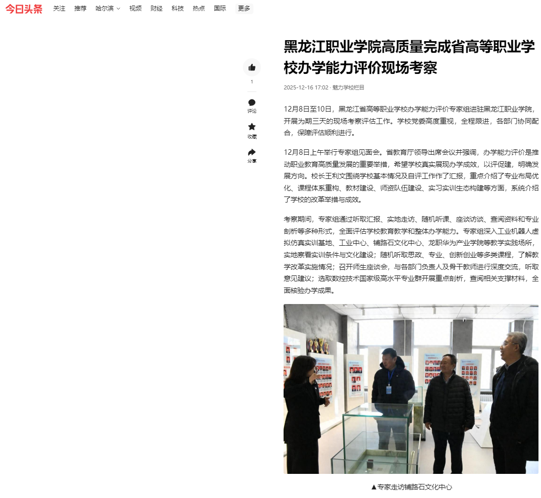 下一篇:【百度新闻】黑龙江职业学院高质量完成省高等职业学校办学能力评价现场考察