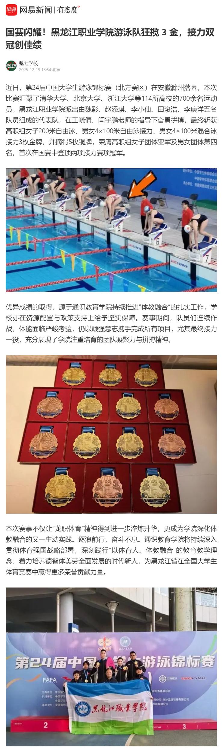 下一篇:【搜狐新闻】国赛闪耀!黑龙江职业学院游泳队狂揽 3 金,接力双冠创佳绩