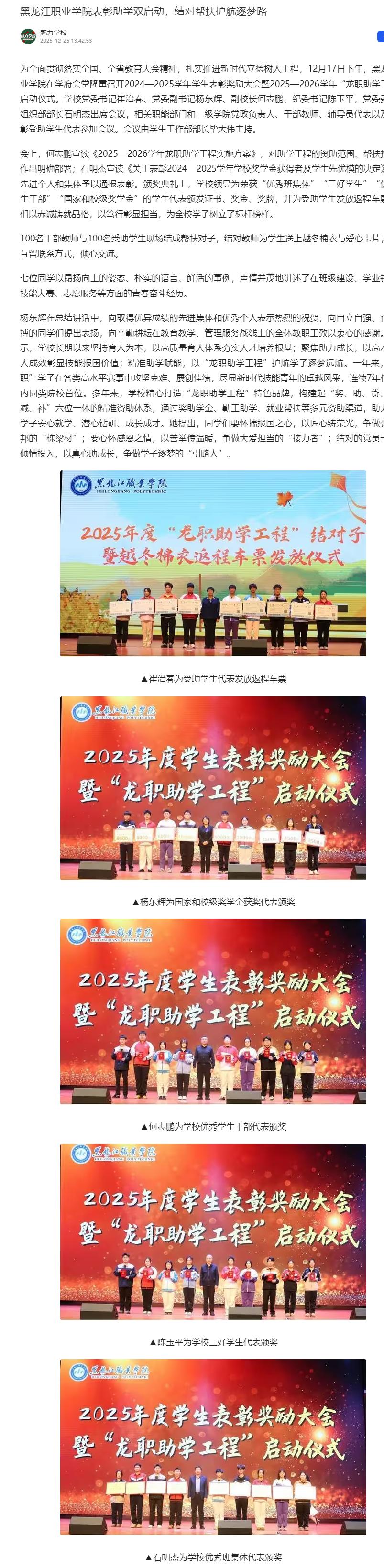 上一篇:【百度新闻】黑龙江职业学院表彰助学双启动,结对帮扶护航逐梦路