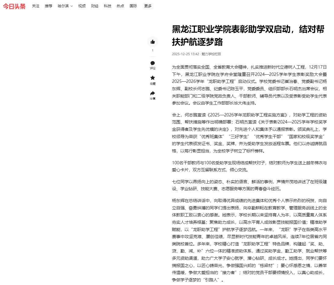 下一篇:【百度新闻】黑龙江职业学院表彰助学双启动,结对帮扶护航逐梦路