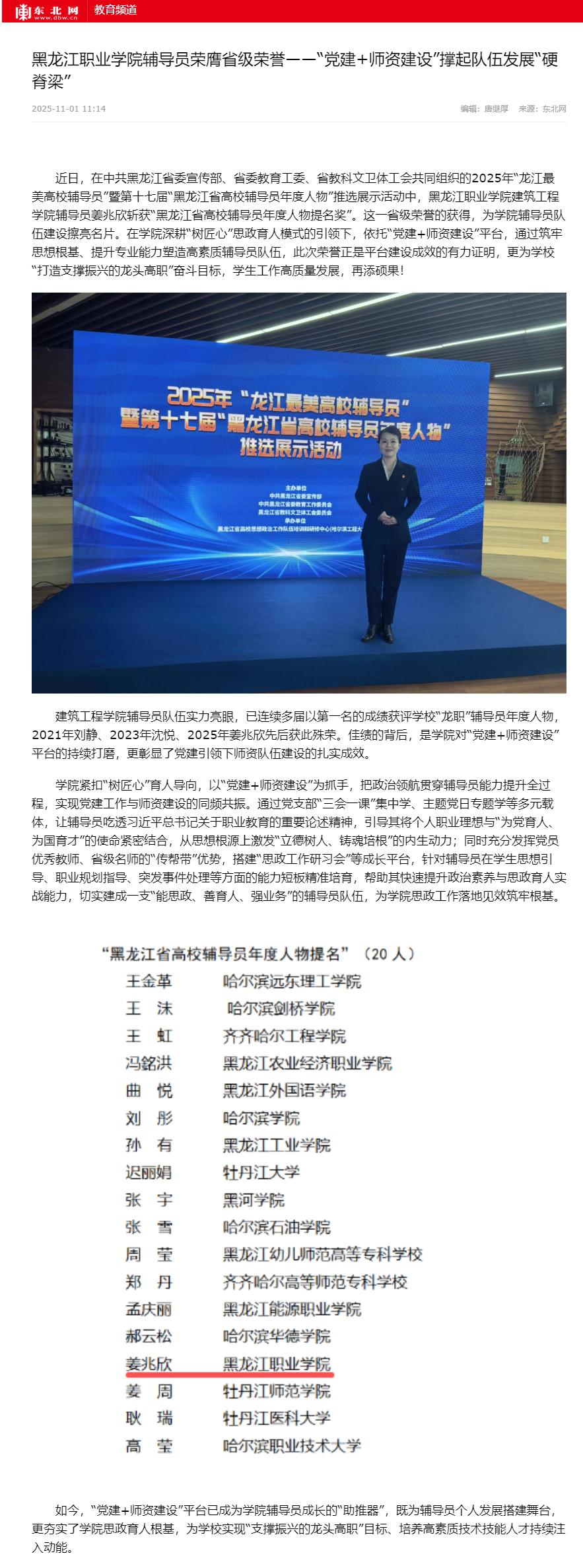 下一篇:【新浪新闻】黑龙江职业学院师生闪耀金砖大赛:以硬核技能彰显育人成效