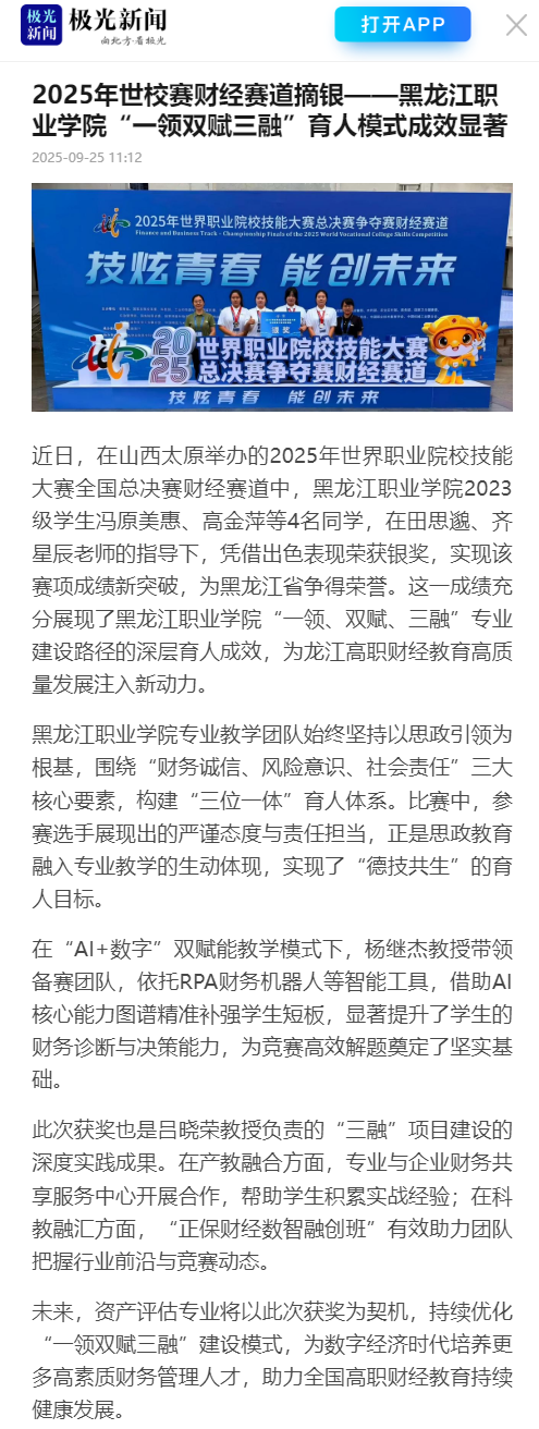 下一篇:【龙头新闻】黑龙江职业学院:以“一领双赋三融”路径打造资产评估与管理“金牌专业”