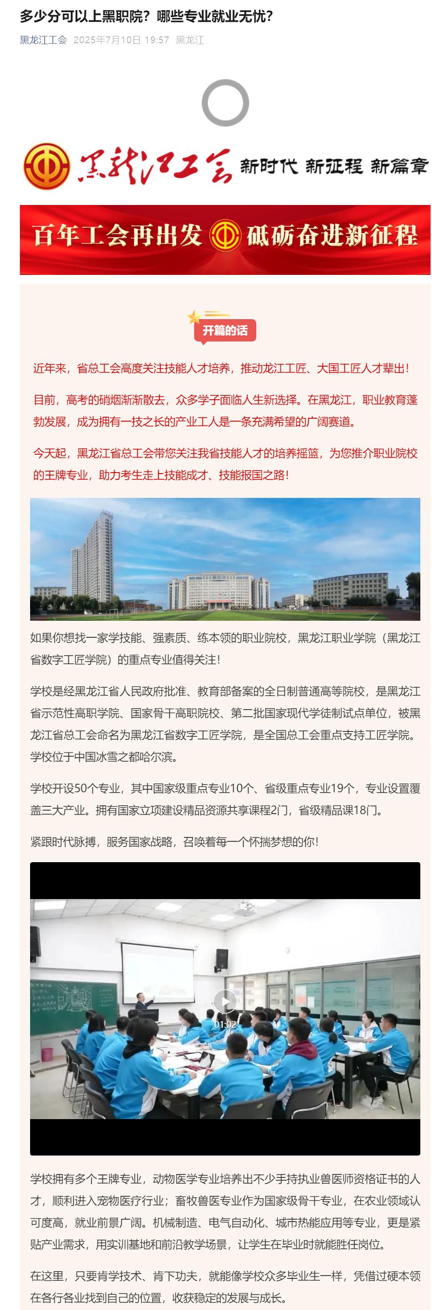 上一篇:【一点资讯】黑龙江职业学院实践团成功入选全国大学生社会实践团队