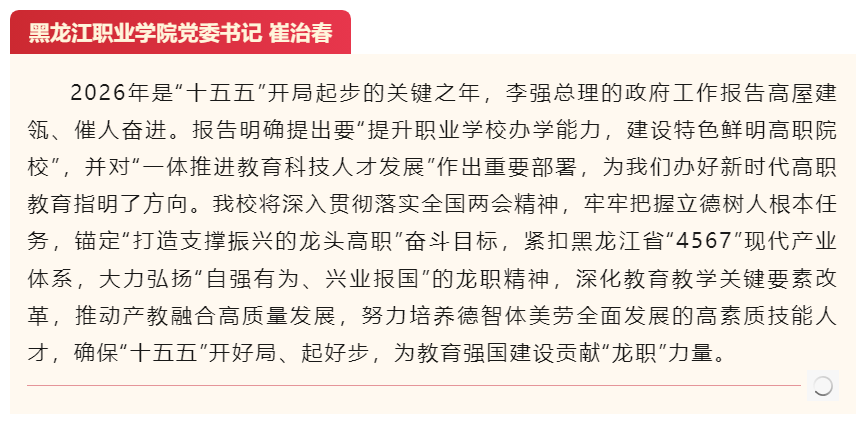 上一篇:【央广网】黑龙江职业学院:为龙江冰雪经济高质量发展注入“智动力”
