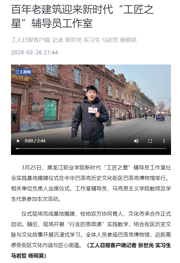 上一篇:【哈尔滨新闻网】校企协同打造中华巴洛克街区“行走的思政课”实践教学基地