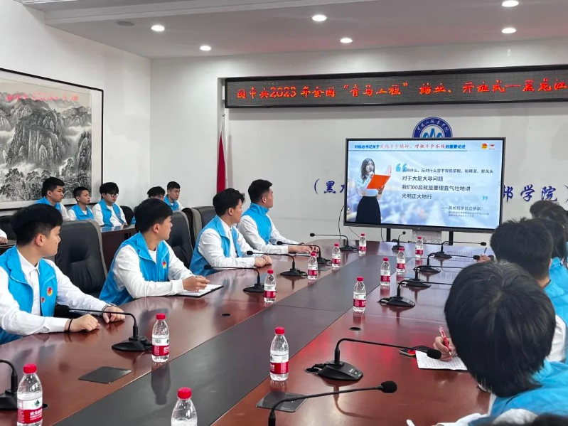 4 月20 日(星期四)上午9:00,团中央组织召开了 2023 年全国“青马工程”结业、开班式。按照团省委、团市委的有关安排,我校的省级市级“青马工程”学员、校级第十六期“青马工程”学员代表近50人在清华楼九楼党委会议室进行了集中的学习培训。
