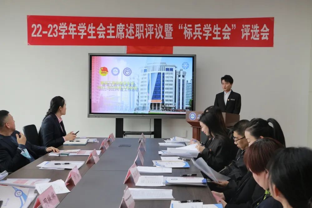 为深入学习贯彻党的二十大精神,深入贯彻《关于推动高校学生会深化改革的若干意见》,落实落细学生会改革要求,建立健全述职评议机制,努力塑造富有理想、关心同学、清新阳光的组织形象,充分展现学生会在新时代的奋进新姿态,4月19日下午,校团委在工匠楼407会议室召开了2022—2023学年学生会主席述职评议暨“标兵学生会”评选会,一校区六个分院学生会主席进行了工作述职,校团委组宣办主任唐晓恬,学工部学籍科负责人周洋、学生科负责人程美玲、活动课程管理科干事张茜,校团委干事魏然、马雨薇以及六个分院团总支负责人组成了评委团。校团委学生副书记关成主持了评比会。