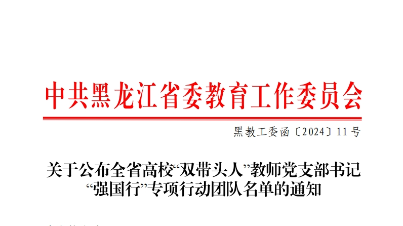 近日,黑龙江省委教育工委公布了全省高校“双带头人”教师党支部书记“强国行”专项行动团队名单,我校农牧工程学院教师党支部、数字商贸学院教师第二党支部成功入选全省高校“双带头人”教师党支部书记“强国行”专项行动团队。