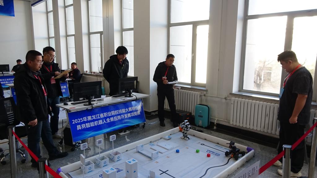11月13日,2025年黑龙江省职业院校技能大赛特色赛“具身智能机器人全景应用开发”赛项在我校成功举办。本次大赛汇聚全省6所高职院校的10支代表队同台竞技,通过“以赛促教、以赛促学”的方式,推动具身智能技术与职业教育深度融合。