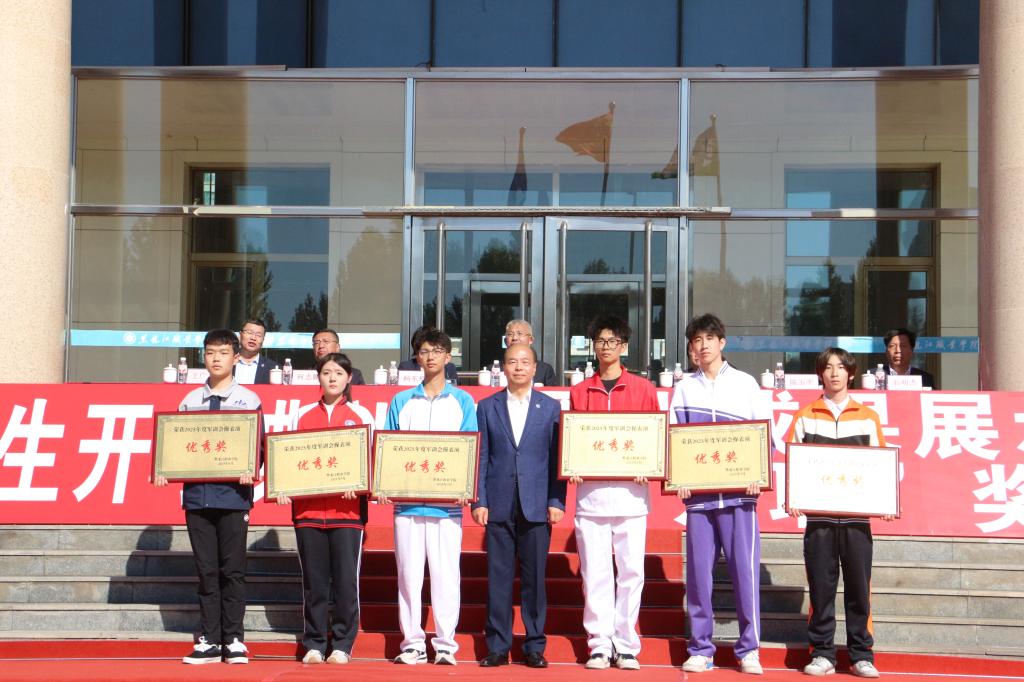 ▲石明杰为第二校区军训会操表演优秀奖集体颁奖