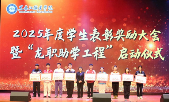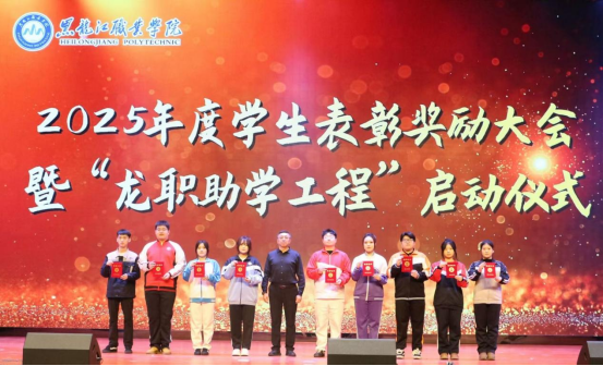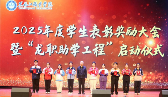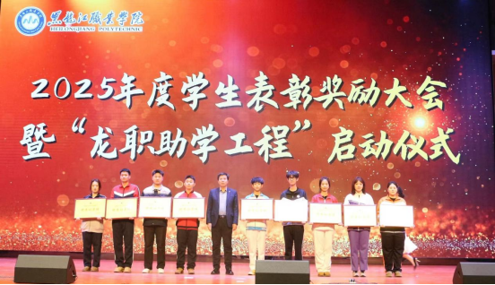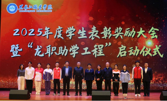 为全面贯彻落实全国、全省教育大会精神,扎实推进新时代立德树人工程,12月17日下午,学校在学府会堂隆重召开2024—2025学年学生表彰奖励大会暨2025—2026学年“龙职助学工程”启动仪式。学校党委书记崔治春、党委副书记杨东辉、副校长何志鹏、纪委书记陈玉平,党委委员、组织部部长石明杰出席会议,相关职能部门和二级学院党政负责人、干部教师、辅导员代表以及受表彰受助学生代表参加会议。会议由学生工作部部长毕大伟主持。