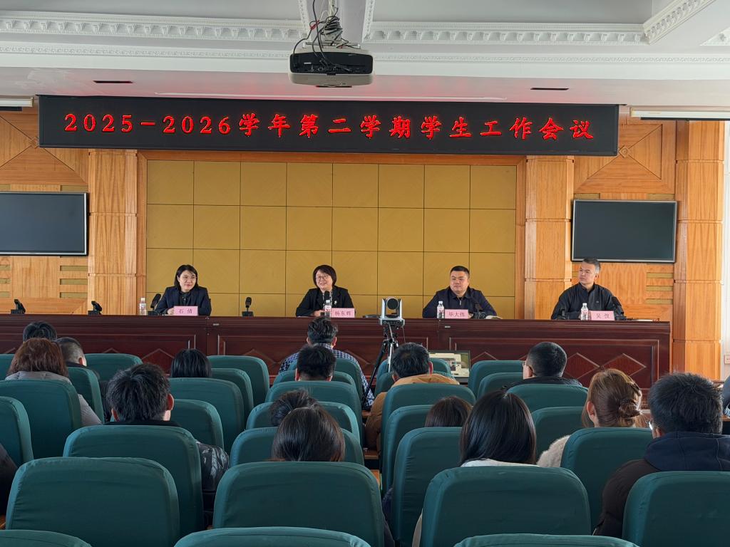 2月26日,学校在清华楼经济报告厅召开2025-2026学年第二学期学生工作会议。学校党委副书记杨东辉出席并讲话,学生工作部全体人员及二级学院党总支副书记、学管办主任、全体辅导员参加会议。会议由学生工作部副部长吴弢主持,第二校区同步视频参会。