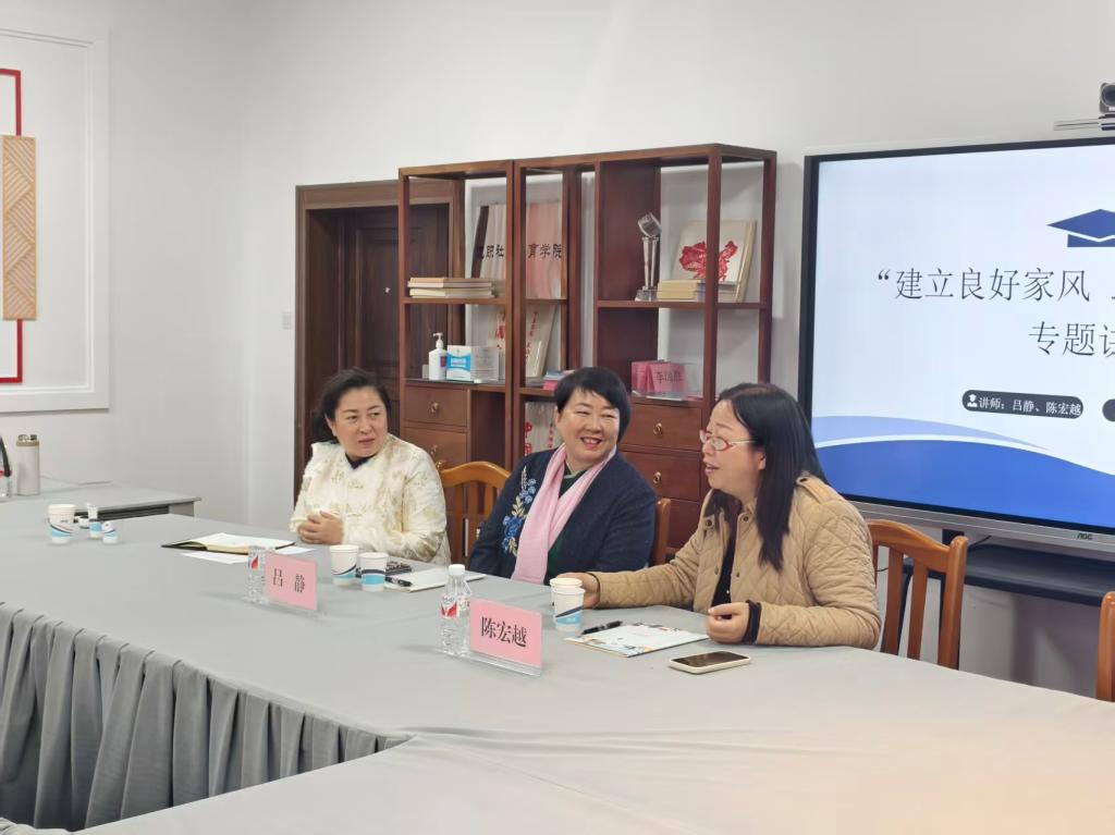 为提升教职工家庭文化建设能力,凝聚家校社协同育人合力,17日下午,学校工会特邀请哈尔滨师范大学附属中学的历史高级教师、文科班主任吕静,数学高级教师、理科班主任陈宏越来校,与教职工进行了一场以“建立良好家风 助力孩子成长”为主题的交流座谈。