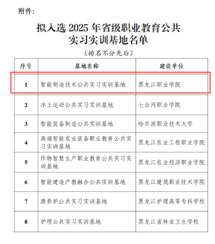 我校智能制造技术公共实习实训基地成功入选2025年省级职业教育公共实习实训基地,标志着学校在产教融合、技能人才培养领域的成果获省级权威认可。