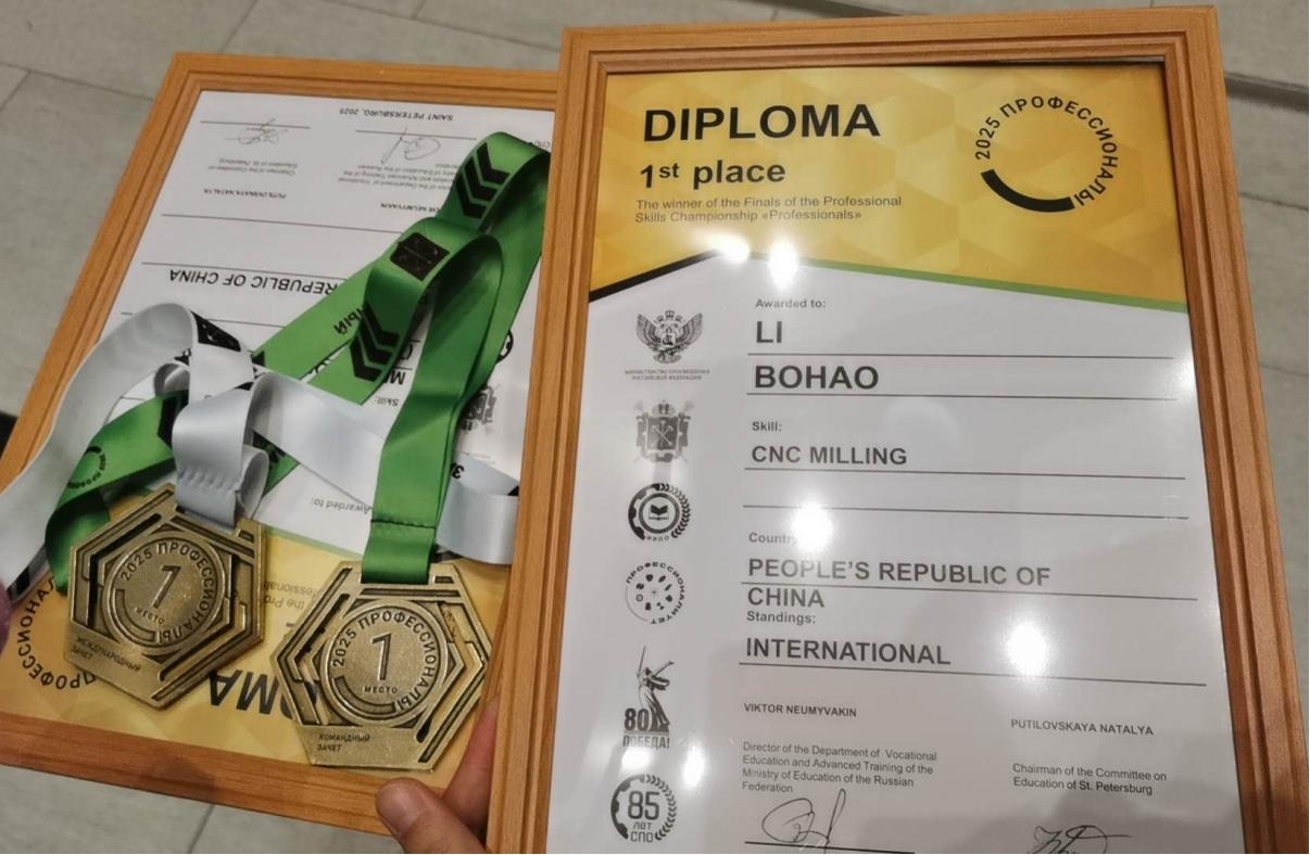 近日,2025年“职业达人”全俄职业技能大赛在俄罗斯圣彼得堡正式拉开帷幕。本次赛事吸引了俄罗斯国内56支队伍及来自29个国家的33支队伍参赛,覆盖全球30个国家共89个地区,15000名顶尖技能选手围绕27个赛项展开巅峰对决。智能制造技术学院党总支书记敖冰峰带队,指导教师李宪辉、参赛学生李博昊代表学校出征赛场。随着赛事正式启动,黑龙江职业学院代表队在数控铣赛项中迎来激烈比拼。面对不同国家和地区选手的强劲挑战,参赛队员沉着应战、精准操作,充分发挥日常训练积累的专业功底与实战经验。经过多轮角逐,代表队最终脱颖而出,一举斩获国际组第一名(赛事分为俄罗斯组与国际组)和不分组别排名的团队赛第一名,以双金战绩圆满收官。