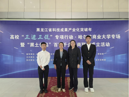 6月13日,黑龙江省科技成果产业化突破年高校“三进三促”专项行动哈尔滨商业大学专场暨"黑土优品"百校千企电商联盟成立仪式在哈尔滨商业大学举行,学校受邀担任副主任单位,副校长吴艳秋、数字商贸学院党总支书记张玲、网络直播教研室教师谢昀桐及学生代表万鸿霖受邀出席活动。