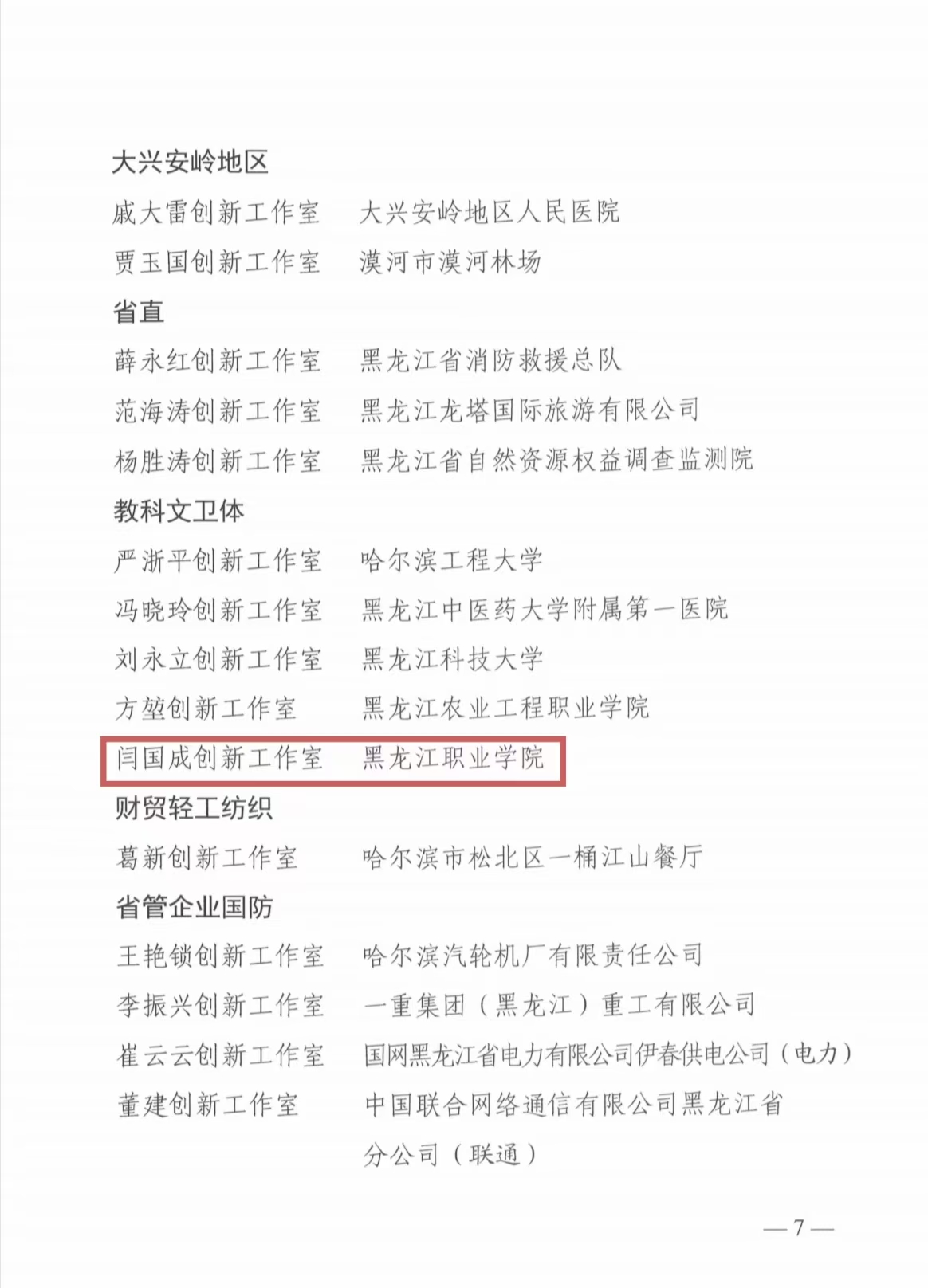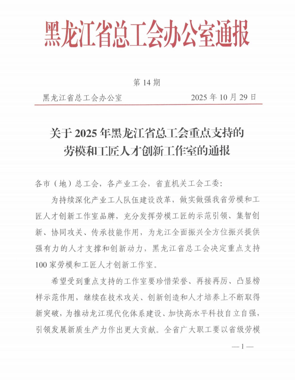 近日,黑龙江省总工会发布《关于2025年黑龙江省总工会重点支持的劳模和工匠人才创新工作室的通报》,决定重点支持100家劳模和工匠人才创新工作室,我校智能制造技术学院闫国成创新工作室成功入选。