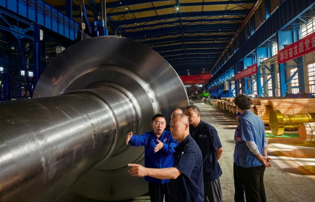 ▲闫国成赴一重集团与全国劳动模范、全国五一劳动奖章获得者桂玉松一同探讨技术难题