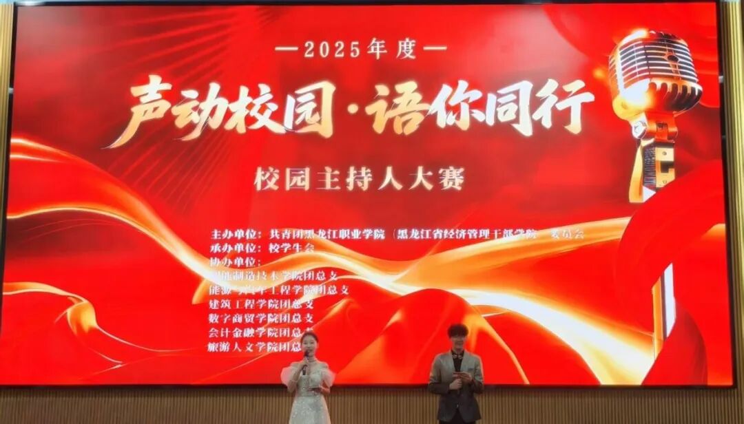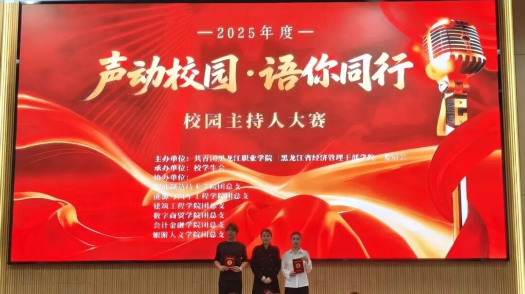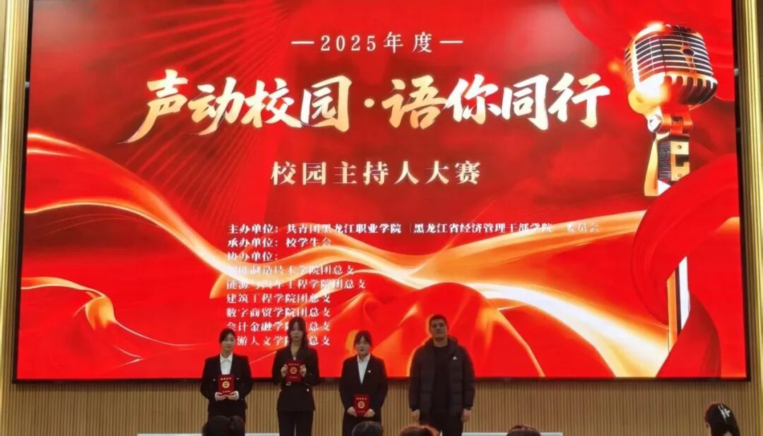 为增强综合素养、展现主持新风貌,用声音传递温度,以表达诠释担当,2025年11月6日黑龙江职业学院“声动校园·‘语’你同行”校园主持人大赛圆满落幕。校团委干事魏然出席大赛并担任颁奖嘉宾,智能制造技术学院团总支教师副书记邢磊、建筑工程学院团总支教师副书记姜兆欣、数字商贸学院团总支教师副书记娄为正、会计金融学院团总支教师副书记金鑫、能源与汽车工程学院教师褚捷、旅游人文学院教师王宇晗构成本次大赛的评委团,校大学生新媒体中心广播台李轩、孙康主持赛事,比赛设“挑战口舌”“模拟主持”“配音表演”三个环节,选手们以清晰的逻辑、灵动的台风展现主持素养,用声音传递温度、以表达诠释热爱,现场氛围热烈不断。