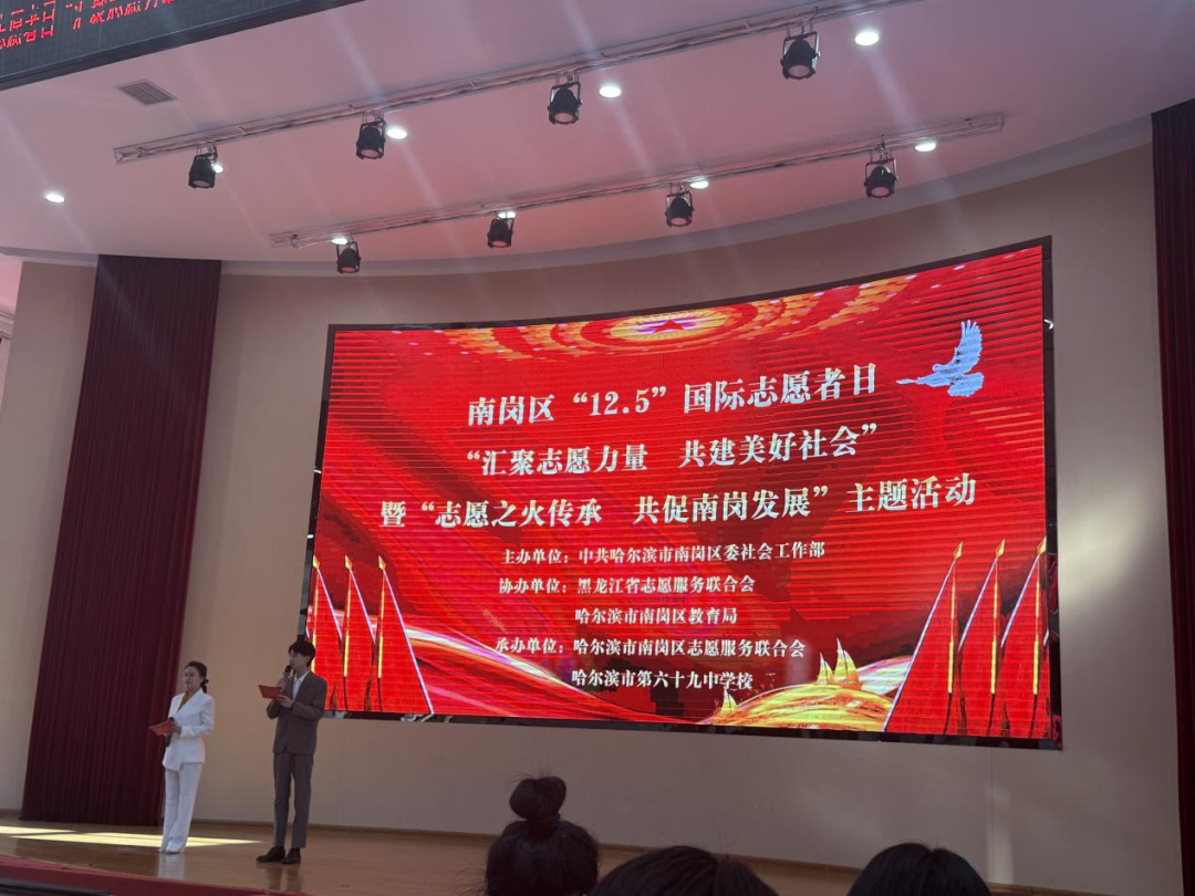 今年是第40个国际志愿者日,为深入弘扬志愿精神,凝聚高校志愿力量,推动南岗区志愿服务事业高质量发展,由中共哈尔滨市南岗区委社会工作部主办的“汇聚志愿力量 共建美好社会”暨“志愿之火传承 共促南岗发展”主题活动,在哈尔滨市第六十九中学哈西校区隆重举行。我校学生工作部党总支书记、校团委书记石倩受邀出席活动并登台接过“亚冬会纪念火炬”,正式承接起志愿精神传承的使命,这柄承载着责任与温度的火炬,将由师生代表带回学校,让亚冬志愿精神在校园落地生根、薪火相传。