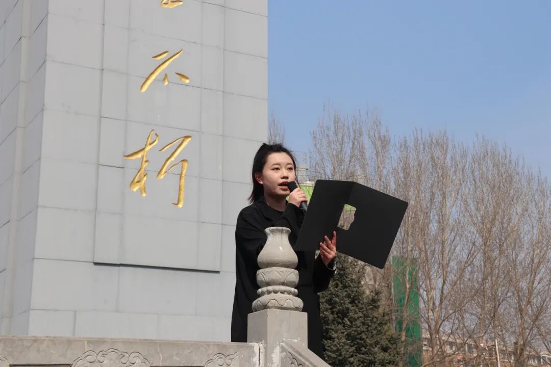 中午12时许,师生们神情肃穆、列队整齐,步入烈士陵园。活动共分六项:清扫纪念碑、敬献花圈、全体默哀、学生代表发言、宣誓、参祭陵园。志愿者们认真擦拭纪念碑,表达对英烈的崇高敬意。在烈士纪念碑前,全体志愿者庄严举起右拳,郑重宣誓,洪亮的誓言在苍松翠柏间久久回荡,展现出“请党放心、强国有我”的青春担当。随后,师生有序瞻仰烈士墓碑与英名录,近距离学习英雄事迹,接受了一次深刻的精神洗礼。