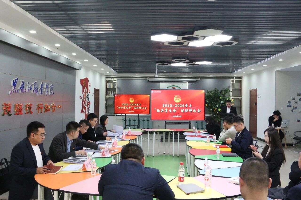 为进一步提升我校团属新媒体建设水平、强化学生会组织服务效能,树立先进典型、凝聚青春力量,按照学校共青团工作整体安排,校团委于4月14日在清华楼1030顺利举办2025-2026学年星级校园微信公众号述职评比会与标兵学生会述职评比会。全校九个二级学院依次登台述职,全面展示团学工作成果与风采。本次评比会特邀黑龙江大学团委宣传科科长高强、哈尔滨师范大学团委宣传部副部长李佳轩,与我校宣传统战部(教师工作部)宣传科科长胡冰、校团委副书记于德洋、校团委组宣秘书张茜、校团委干事马雨薇、常通共同组成评审团,确保评比公平有序开展,评比会由校团委学生副书记许明琪主持。