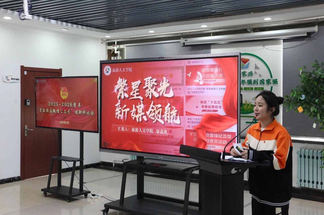在星级校园微信公众号评比环节,各学院公众号运营团队依次汇报平台建设、内容创作、传播成效与特色亮点,充分展现校园新媒体在思想引领、资讯传播、文化育人中的重要作用。