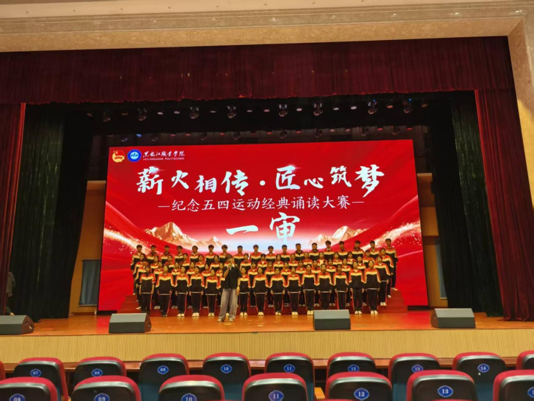 一审现场,各代表队紧扣主题、精神饱满,将五四精神、红色文化、工匠精神与龙江地域特色、职业教育特点有机融合完整呈现节目内容。同学们语言流畅、情感真挚、配合默契,充分展现了龙职学子昂扬向上的青春风貌。