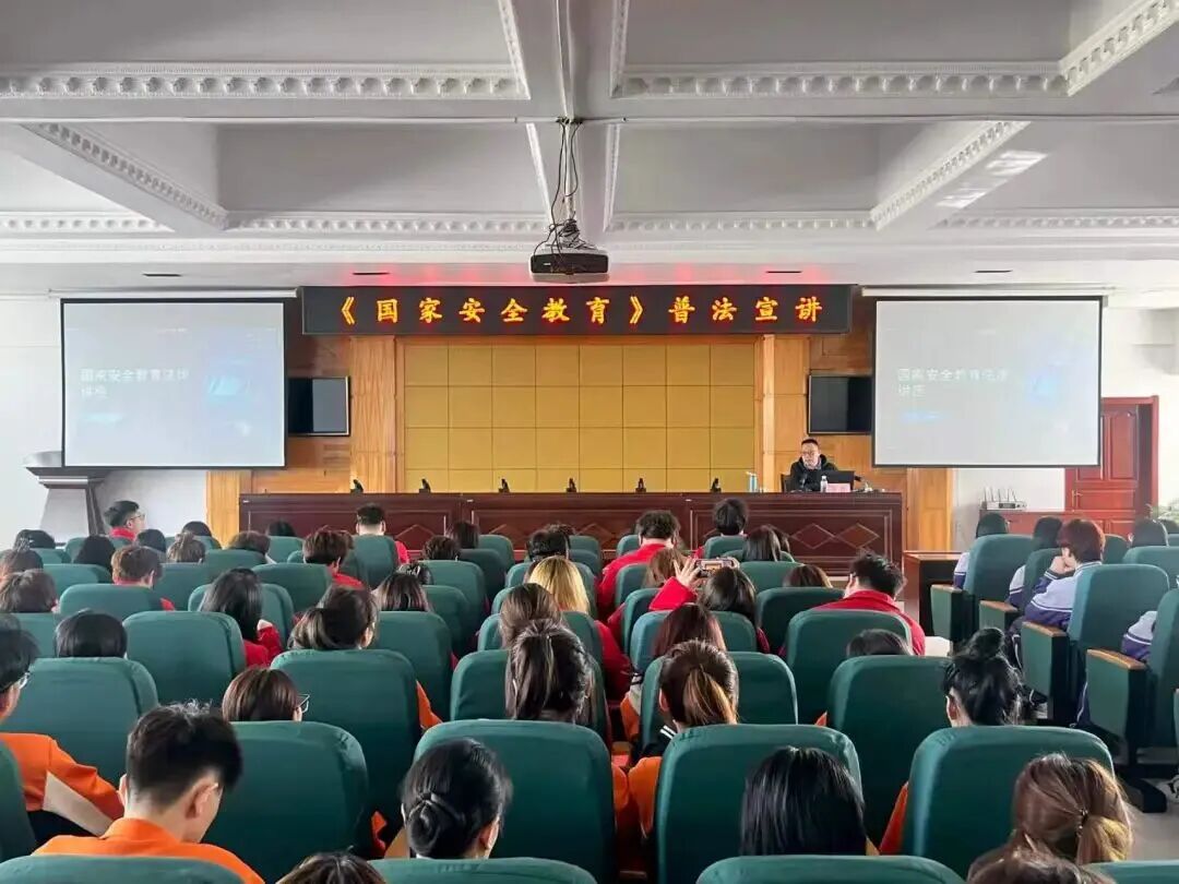 在全民国家安全教育日当天,组织普法讲座,邀请专业教师开展专题讲座,围绕国家安全形势、法律体系、公民责任义务及校园安全实践展开,系统解读多部相关法律法规,详细讲解新型违法行为的法律责任与维权途径,普及保密要求、网络安全防范等实用知识,引导师生认清风险、严守法律底线。