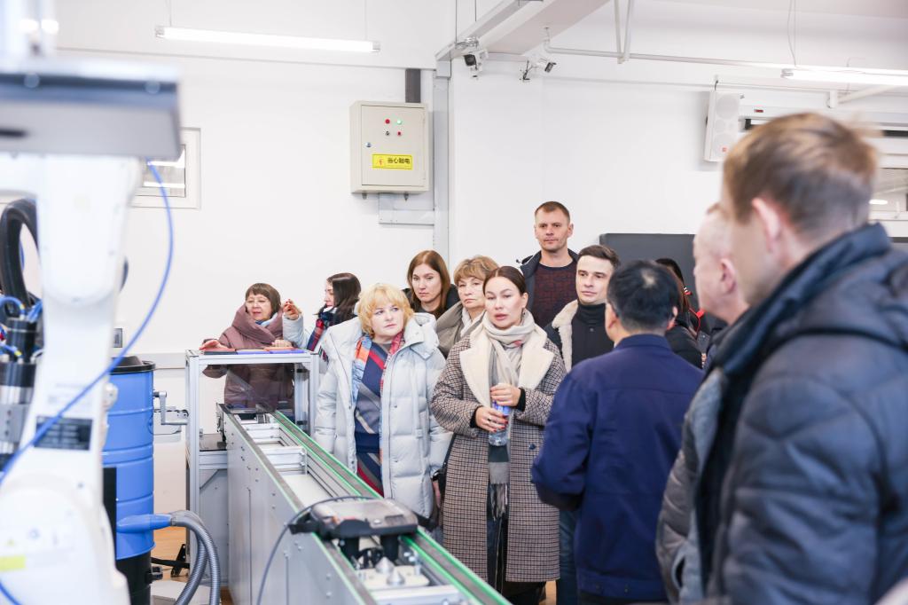 座谈交流会前,俄方代表团实地参观了多轴加工中心、工业机器人、西餐咖啡酒水及智慧零售生产性实训基地等教学场所,仔细察看实训设备配置,详细了解实训教学安排和学生技能培养模式,对我校实训基地的先进性、标准化和产教融合实践深表赞赏。