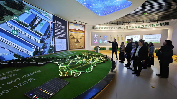 在黑龙江省农业投资集团展厅,学院一行实地参观并了解了企业发展情况,重点了解了企业在科技农业、绿色农业、质量农业、品牌农业等方面的发展理念,以及在保障国家粮食安全和生态安全中的重要作用。