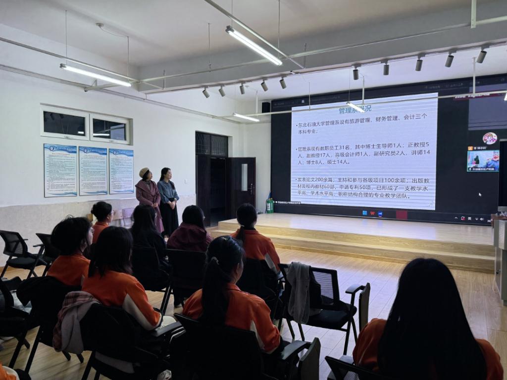 3 月 26 日晚自习期间,专业教研室组织召开了本科专业教育线上见面会。活动特邀东北石油大学秦皇岛校区旅游管理专业主任卢明强教授进行线上连线宣讲。连线中,卢明强主任全面细致地介绍了东北石油大学的办学特色、旅游管理专业的人才培养模式、课程体系及本科阶段学习生活环境。在互动交流环节,同学们热情高涨,围绕转段考核、课程衔接、升学规划等问题积极发问,卢主任逐一耐心解答,有效消除了同学们对于高本贯通衔接阶段的认知盲区,进一步坚定了大家升入本科阶段深造的决心与动力。